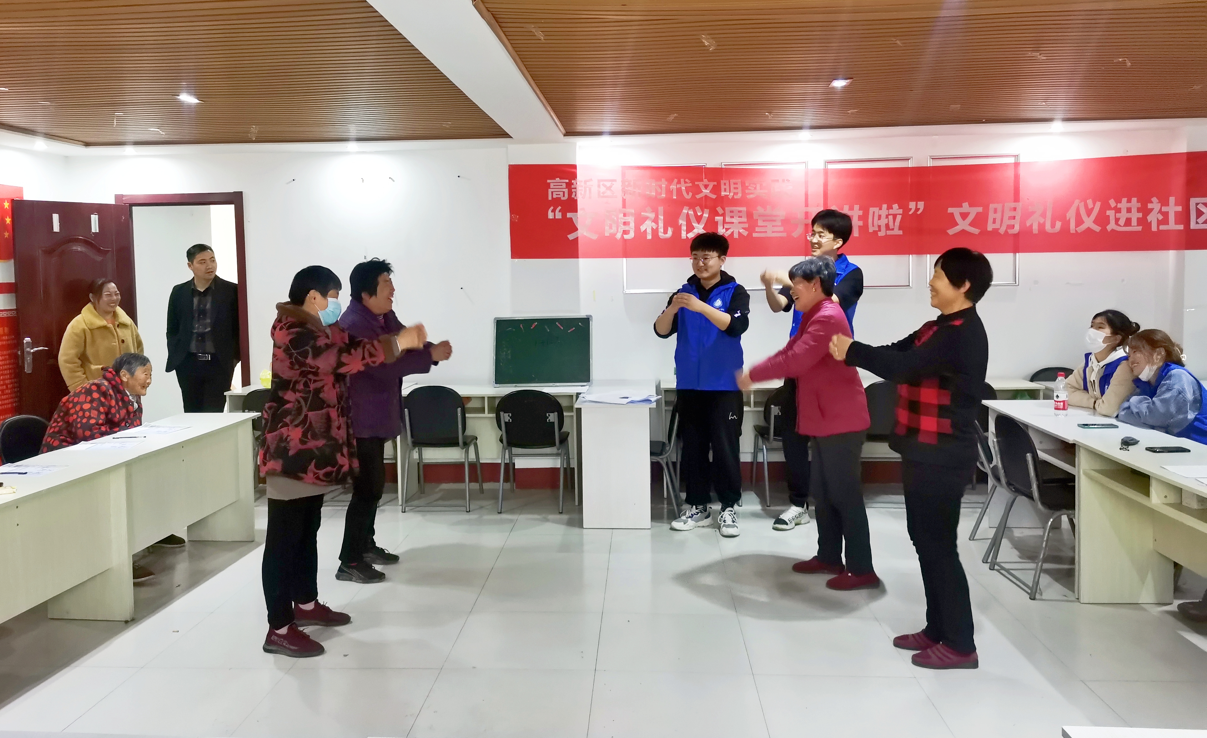 活动通过讲、践、说、话、写五个环节进行,让居民参与其中,切实提升居民的文明意识,扩充居民文明礼仪知识,实现“人人讲文明 人人会礼仪”的社会氛围。志愿者们提前联系活动场地,准备好活动时所需的文明礼仪故事、文明名言以及文明标语,确定社区居民空闲时间,届时准备记录,确保活动顺利有序进行。活动中,志愿者们先向社区居民介绍本次活动,为居民讲授家喻户晓的《孔融让梨》等礼仪故事,引导居民学习古、今文明礼仪之握手礼;古、今文明礼仪之鞠躬礼。志愿者先行示范,然后引导居民分组学习,并进行情景演练,对表现好的小组给予礼品奖励。志愿者们在活动中不断创新思路、强化举措、扎实推进,以实际行动助力社区发展。