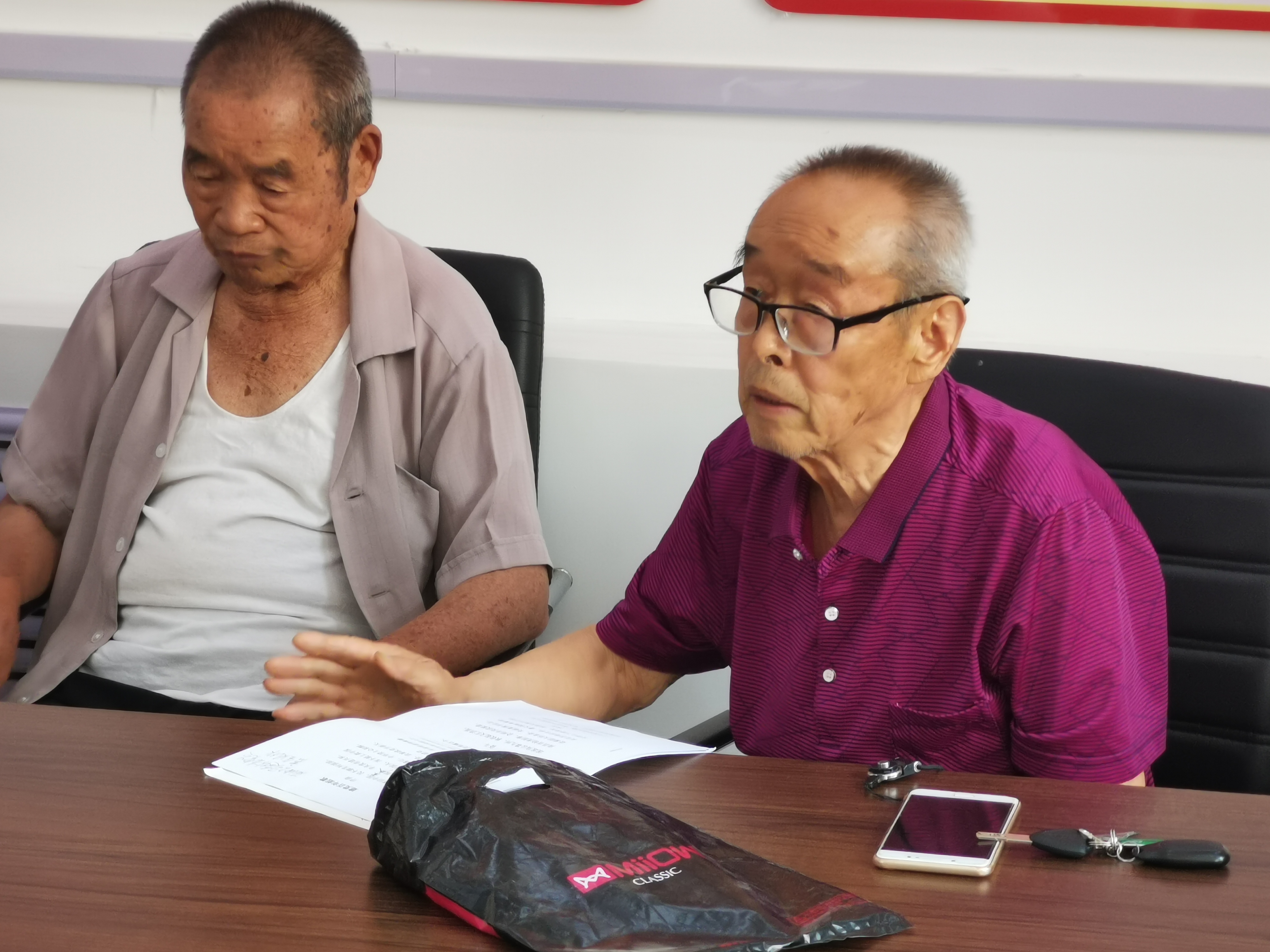 立志千秋伟业,百年恰是风华正茂,在八一社区会议室庄严肃穆的背景下,志愿者们面容庄重,同老党员们相对而坐,在老党员的讲解下,现场的志愿者们再次回到那个硝烟弥漫的战争年代,重温那段振奋人心的红色历史。老党员们动情地讲述了多个革命故事,在场的志愿者们听入了迷,也对以前革命先烈的事迹有了更深的认识和感悟,激发了志愿者们对传承革命先辈精神的坚定信心及同心共筑中国梦的美好心愿。聆听老党员们亲身经历的红色路程,学习老党员的坚毅品格,通过老党员的自我经历,引申出中国共产党的崇高精神。探寻红色足迹,挖掘红色故事,浓厚的红色氛围下,志愿者与老党员共同学习红色精神。为了表示对中国共产党和祖国的尊敬,老党员和志愿者共同歌唱中华人民共和国国歌《义勇军进行曲》。最后,老党员和志愿者进行合照留念。