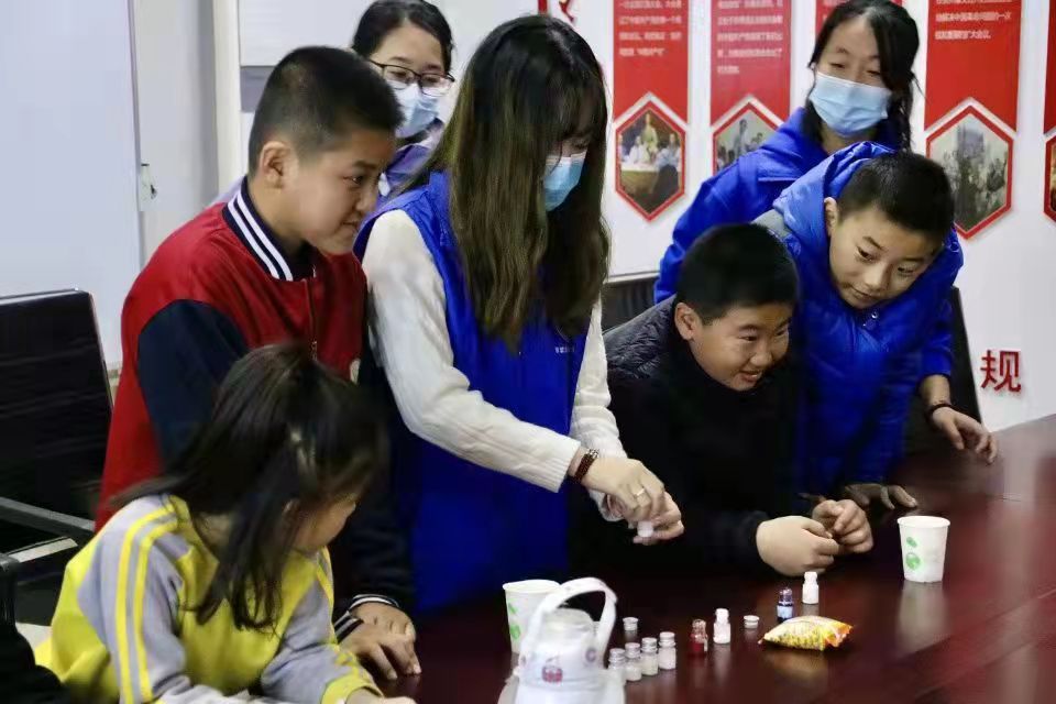 活动开始后,志愿者给小朋友们测量体温,并以饼干作为奖品,调动其积极性,活跃气氛。随后,志愿者通过PPT的形式,声情并茂地教孩子们如何识别食品包装后的图标与各种信息,以及辨别食物是否新鲜的方法。小朋友们都积极举手发言,纷纷展现自己所掌握的食品安全知识。为进一步了解零食背后的“秘密”,志愿者们又拿出一瓶瓶五颜六色的食品色素添加剂,通过做实验的方法将一杯杯清水发放给孩子们,共同制作一杯“碳酸饮料”,并且详细讲述了使用大量香精色素对人体的危害,这让孩子们对小小食品中蕴含的大学问感到十分惊讶。最后,志愿者与小朋友们共同完成“中国居民平衡膳食宝塔”拼图并合影留念,活动在欢声笑语中圆满结束。