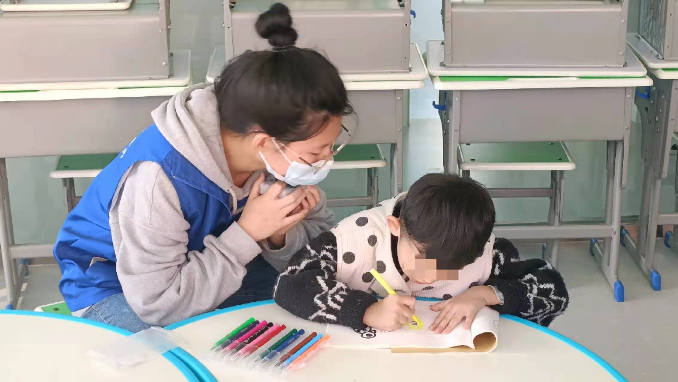 为更好地进行志愿服务,志愿者们提前学习了关于自闭症的相关知识。活动正式开始,小朋友们有序落座,志愿者利用带图小卡片声情并茂地向小朋友们讲解水果蔬菜中富含的有机物以及对我们身体的益处,小朋友们听的很认真,回答问题也非常精准全面,在认识了这些蔬菜水果之后,志愿者拿出为小朋友准备好的画纸与画笔,让小朋友们在画纸上自由发挥,小朋友们聚精会神,全身心的投入到绘画中,独立的用画笔在画纸上画出自己想要的蔬菜和水果,在渐渐和志愿者熟悉起来后,小朋友们还会和志愿者讲解画的是蔬菜的哪个部分,是什么颜色。课堂结束后小朋友们帮助志愿者一起收拾课堂并合影留念。
