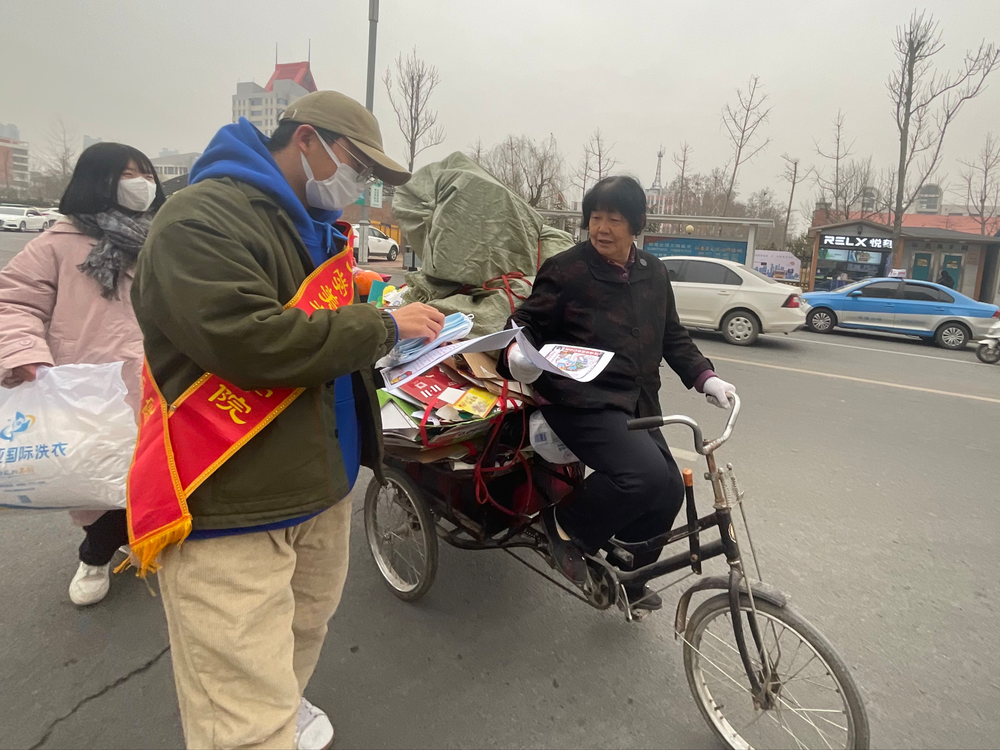 活动前期,志愿者们添置防控知识清单、酒精喷雾、医用外科口罩等物品。为广大市民普及防疫知识,并按照工作安排每个志愿者都积极参与,用酒精喷雾为共享自行车,公交站台消毒并擦拭,为群众提供更好的使用体验,活动成员在寒假期间加入社区疫情防控工作为国家疫情防控工作出力,报名参加社区组织的防疫志愿者等服务工作。随后,为环卫工人,交通警察提供医用外科口罩,为公交站台的亲自带上防疫口罩,防疫口罩给各位市民提供更安全的防疫措施广大市民积极参与相应。实践活动依次进行,在新年来临之际,向广大市民致以祝福,助力国家疫情防控工作,给人民群众创造一个健康的生活环境。作为老员工,我们应该懂得“滴水之恩,涌泉相报”并将其付诸于实践,持续四个小时的活动志愿者们在欢声笑语与广大市民的积极参与中。活动接近尾声,“爱心易路行”服务团队合影留念。