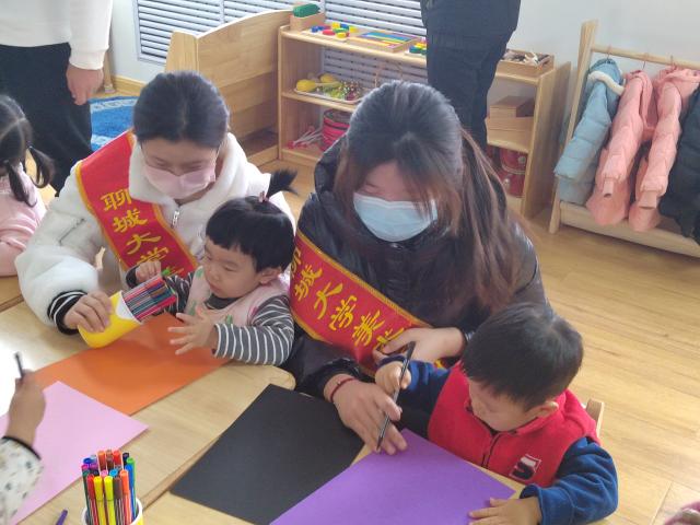 志愿者们首先将收集好的有关疫情的小常识、感人的小故事,通过ppt的形式向小孩子们展示。让他们对疫情树立正确的观点,孩子们首先在志愿者们的帮助下,将自己想要描绘的预防疫情的图案在卡纸上表现出来。由志愿者向小孩子们每人发放一到两个口罩。由于孩子们太小,控笔能力不是很好,志愿者们耐心的辅助他们画画,还教给他们正确的握笔姿势。创作完成后,挑选了一部分小朋友将自己的的创作理念和内心感想分享给大家。小朋友们抒发的情感都是对于抗疫人员的喜爱与敬佩。志愿者们组织孩子们一起为“口罩”添一笔色彩,为阴天抹一条彩虹,为医护人员描绘一道“护身符”,把祝福化为精神力量传达给还奋斗在一线的抗疫英雄们。