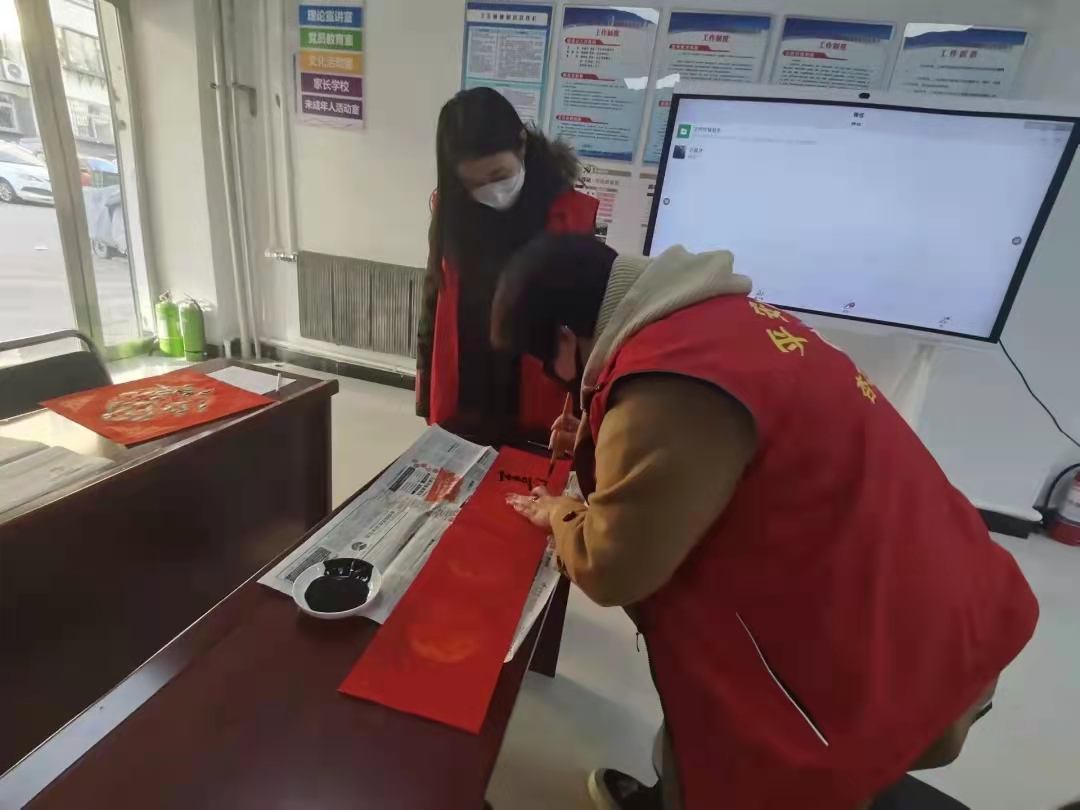 春节是我国最为重要的传统节日,而春联则书写着辞旧迎新的心情和美好的祝愿,志愿者本着传递美好祝福的初衷举办此次活动。志愿者们向居民讲解春联的起源与意义,在志愿者的讲解下,居民进一步了解了我国的传统文化,并表达着自己的想法与感受。志愿者还与居民一起诵读了春联,从对联首尾字的平仄音中区分上下联,诵读声中,传递着人们的新春祝福;吉祥的话语中,流露着人们的幸福与感动。随后,在弥漫着墨香和浓浓年味的氛围中,志愿者们利用自己的专业特长,把一个个美好的祈愿挥洒在红色的对联纸上。创作出一幅幅饱含深切祝福的横幅和春联等作品,让众人大饱眼福。大红的春联透露出新年的喜庆,也让人们感受到来自志愿者的关爱。志愿者们送上的爱心,不仅为构建美好社会打下基础,也把温暖和爱传递到人们的心里。或许礼品并不贵重,但志愿者们的心却真诚之至,虽身在严冬,心却依旧火热。