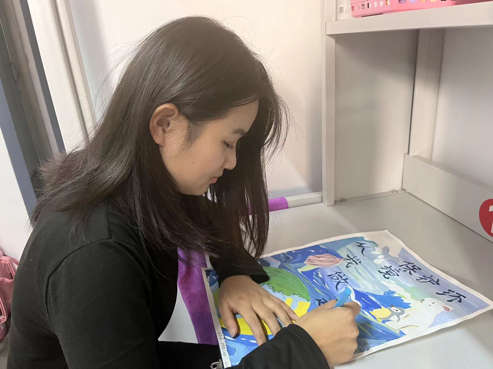 树环保之风,迎美好明天。活动负责人首先为同学们播放了环保记录宣传片,其中记录了我国在保护植被方面的措施以及在生活中保护植被的方法,同学们认真观看、仔细记录。接着志愿者们组织了“诗句接龙”游戏环节,同学们积极思考、反应迅速,展现出了丰富的诗词知识,比赛中涌现出“不知细叶谁裁出,二月春风似剪刀”、“春风又绿江南岸”等令人眼前一亮的诗句。随后同学们根据此次活动所学习的内容,充分发挥想象力,将自己对爱护环境的认识通过创作手抄报表达出来。作品内容丰富、主题明确,版面图文生动形象,一张张画作、一句句标语都饱含同学们对环境地重视和思考,极具观赏性和知识性。评分人员及时对作品进行了评选,有效宣传了爱护环境的主题,让知识深入内心,提高了同学们对爱护环境地意识。