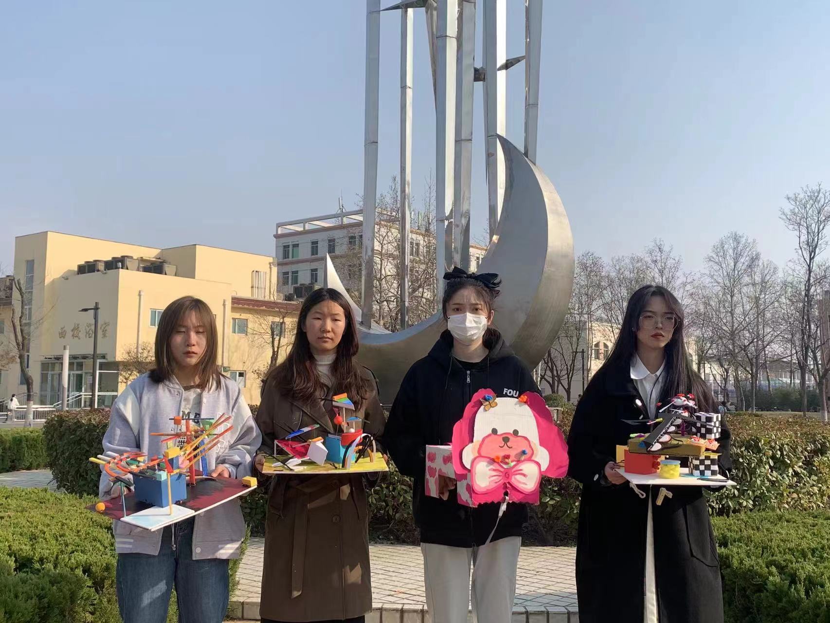 本次活动鼓励同学们通过自己的双手去赋予物品更高的价值,变废为宝,充分利用。活动虽然在冷风中进行,但依旧没有吹灭同学们展示自己作品的热情。参与的同学们依据展览顺序排队讲述自己作品的创意理念和创作意义。每一个作品都十分新颖,本着“回收的不是废品,而是资源”的概念,将我们在生活中忽略掉的无用的东西进行再利用。校园生活常产生很多可利用废品,它们在我们生活中的扮演着重要的角色,几乎渗透到我们生活的每一个角落,如饮料瓶,废纸,台灯,旧棉絮﹐上网配件等可回收物品。大家巧妙地利用这些材料,以美观实用为出发点,让每个作品都富有新意和创意,不但赋予了他们新的使用价值,也提高了自己的动手能力。