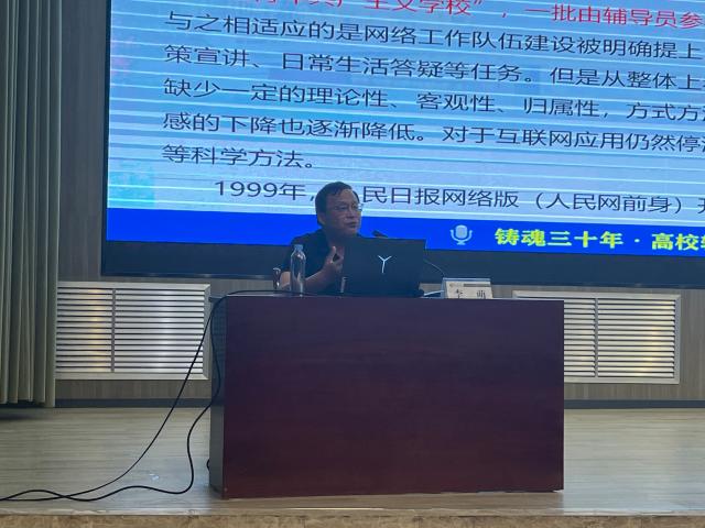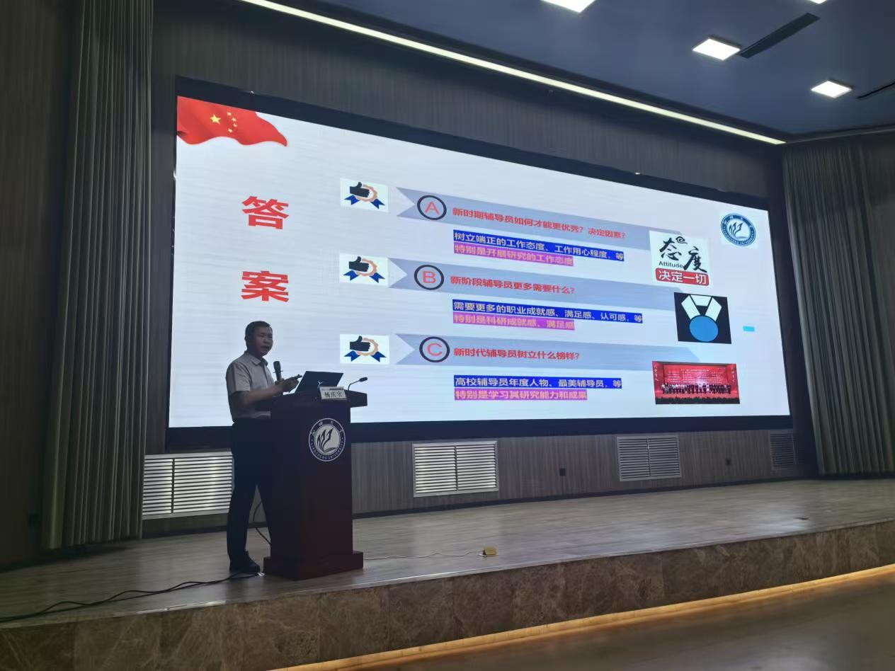 bevictor伟德国际公司党委书记、bevictor伟德国际“创艺家”辅导员成长工作室名誉主持人杨庆实以“强化科研自我赋能意识与能力,切实提升辅导员职业核心素养”为题,从自身二十余年辅导员工作成长与实践经历切入,打开了辅导员们科研的视野格局,为辅导员提升科研素养带来很多启发与思考。