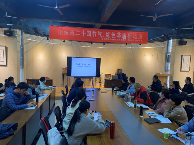 11月24日下午,公司邀请山东省人民政府参事、齐鲁师范学院教授刘德增在学院一楼多功能厅作《什么是“山东的”文化》学术讲座。讲座由王青嵩副经理主持,山东省二十四节气、红色非遗培训班40余人参加了讲座。
